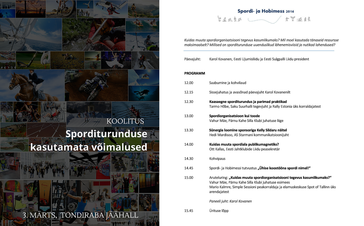 3. märtsil toimub tasuta koolitus „Sporditurunduse kasutamata võimalused“, kus näidatakse, kuidas erinevaid turunduslahendusi kasutades tulemuslikumalt majandada. Koolitust korraldab Spordi- ja Hobimess, kelle missiooniks on koostöös spetsialistidega näidata uusimaid turunduslahendusi ja aidata tagada organisatsiooni edukas areng, et veelgi rohkem inimesi oleks spordi ja tervislike eluviiside lainel.