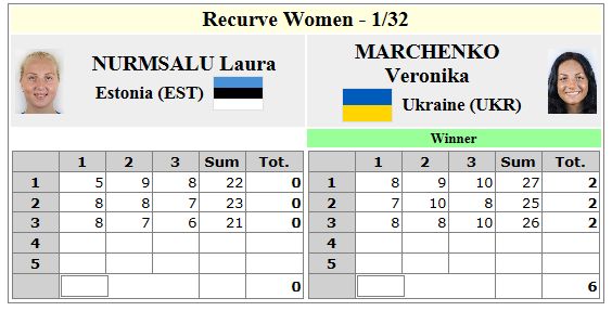 Nurmsalu vastaseks on 23-aastane Veronika Marchenko (UKR), kes lasi Rio OM eelringis 5 silma rohkem ja teenis sellega 30. asetuse. Maikuus toimunud EMil krooniti aga Marchenko Euroopa meistriks nii individuaalselt kui naiskonnaga ja on maailmareitingu tabelis 9. kohal. Kas Marchenko hoog on peale pikka hooaega raugenud, paistab hilisõhtuses duellis, mis algab Eesti aja järgi kell 22:57.